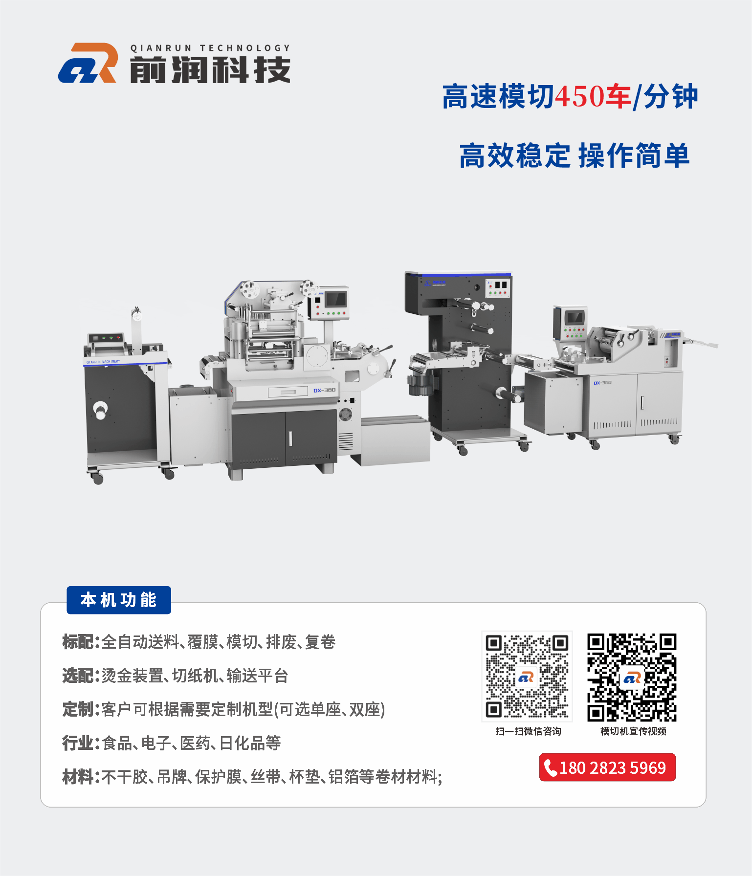 | 4 | 模切速度 | 350-24000times/h | 350-24000times/h | |