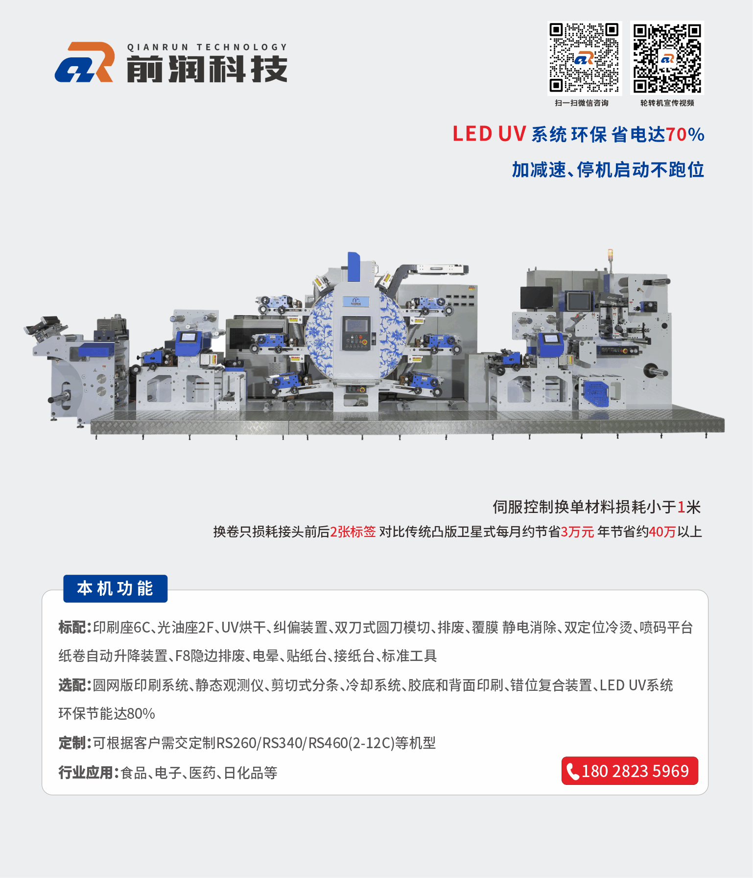 5、先進的LED干燥系統,可匹配普通油墨進行印刷,減少了傳統UV燈的燈管維護,極大地降低了設備的能耗。